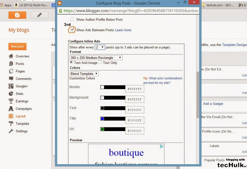 The next thing to note is, after applying the method if you encountered blank Ads or no Ads between the posts on your main page then please do make sure that in the Earnings section you must allowed and selected to Display ads in my sidebar and posts or Display ads below the posts option.