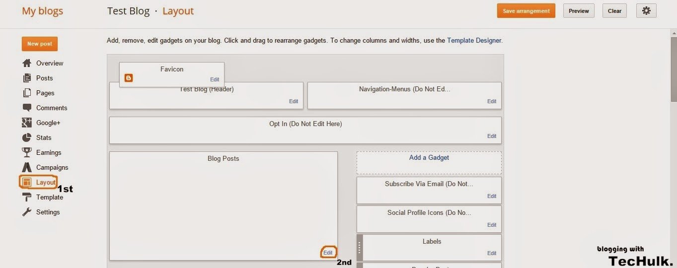 • There in the Layout section you will find Blog Posts, click the edit option.
